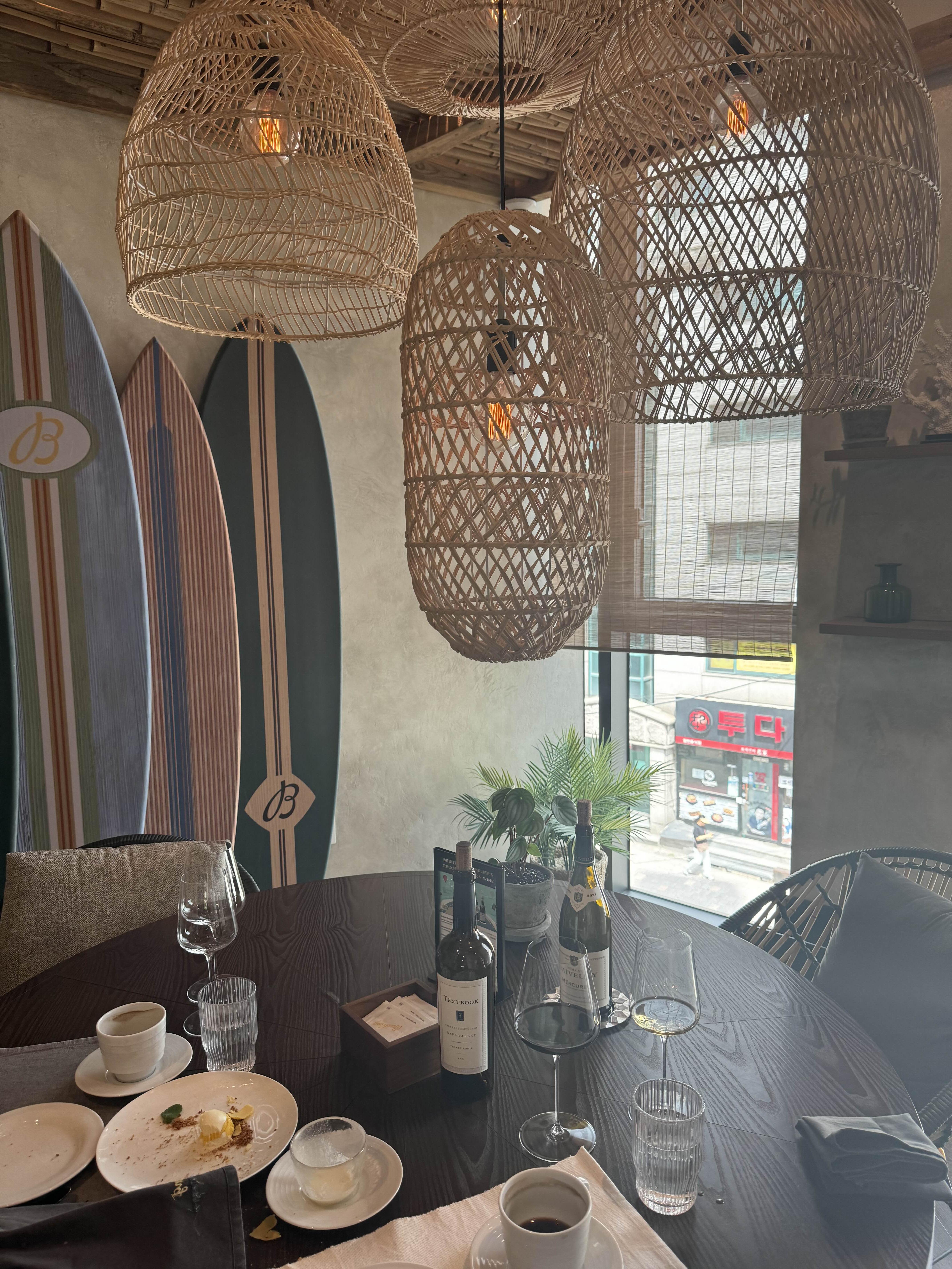 매장에 큰 와인셀러가 있는 만큼 와인 리스트도 다양하다. 와인 가격도 저렴한건 7만원부터 시작할 수 있고, 1병 콜키지 프리여서 특별한 날에는 직접 챙겨와도 좋을것같다.
